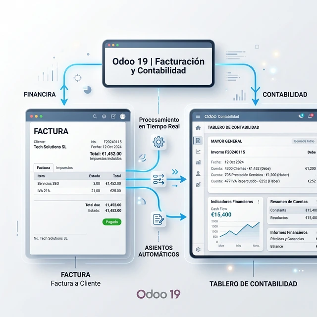 A diferencia de otros sistemas donde los datos están aislados, en Odoo **todo se habla**. La información fluye sin errores desde el primer contacto hasta el reporte contable final.